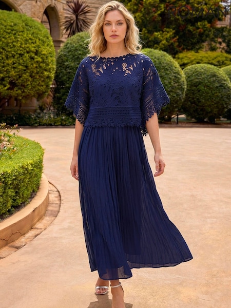 Roman Blue Petite Stripe Tie Waist Shirt Dress