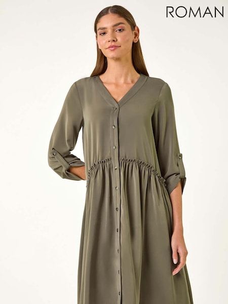 Roman Blue Abstract Print V-Neck Maxi Dress