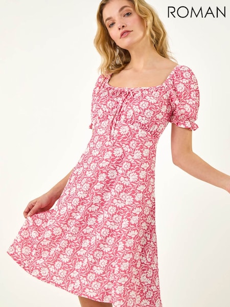 Roman Pink Floral Tie Front Dress