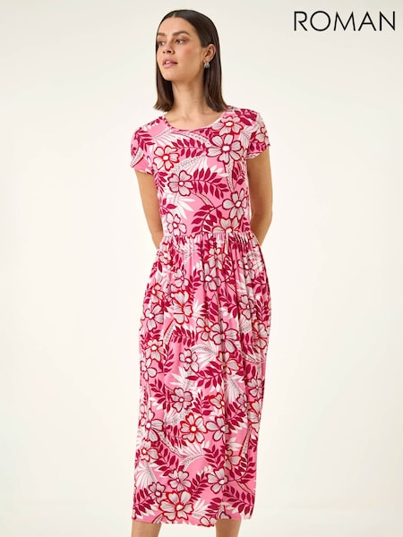 Roman Pink Floral Pocket Midi Dress