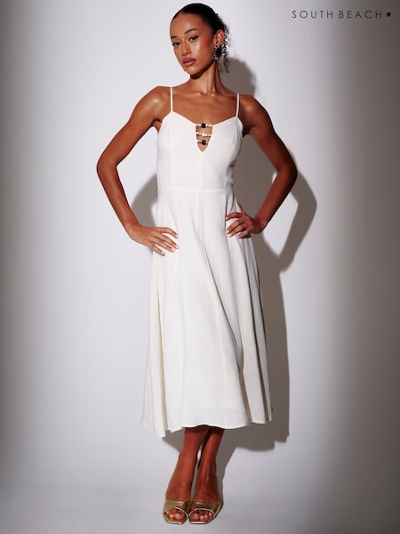 South Beach White Bead Detail Sleeveless A Line Dress