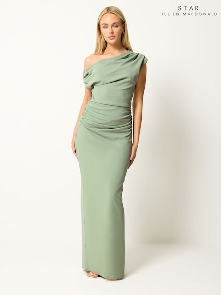 Star by Julien MacDonald Green One Shoulder Draped Maxi Dress