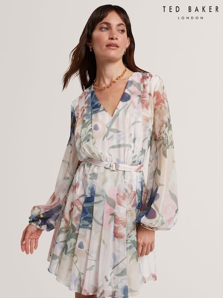Ted Baker Pink Pleated Mini Printed Dress