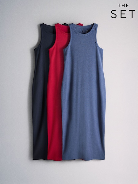 The Set 3 Pack Ribbed Maxi Dresses Khaki Green/Cream/Pink