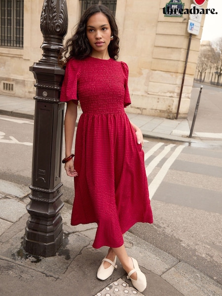 Threadbare Bright Red Cotton Smock Style Midi Dress