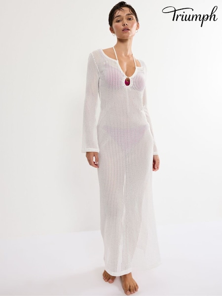 Triumph White Beach My Wear Long Sleeved Crochet Long Dress