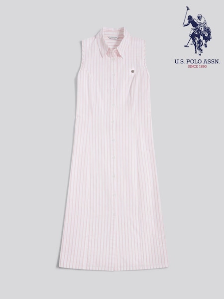 U.S. Polo Assn. Pink Sleeveless Tie Back Midi Shirt Dress
