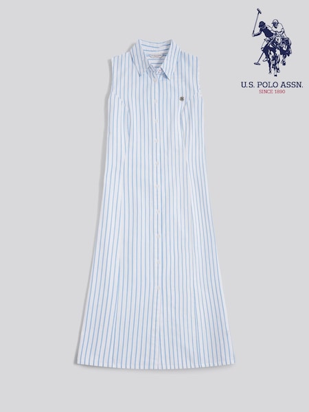 U.S. Polo Assn. Blue Sleeveless Tie Back Midi Shirt Dress