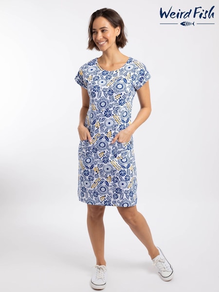 Weird Fish Blue Tallahassee Printed Jersey Dress