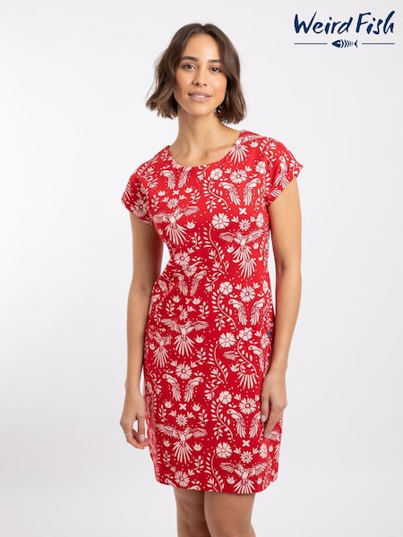Weird Fish Red Tallahassee Printed Jersey Dress
