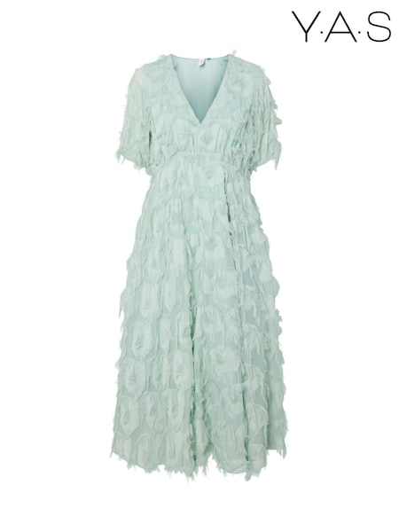 Y.A.S Green Textured V-Neck Midi Dress