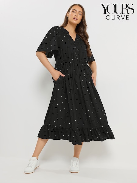 Yours Curve Black Spot Half Placket Dress