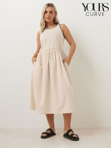 Yours Curve Natural Contrast Blanket Stitch Midi Dress