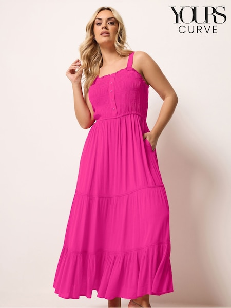 Yours Curve Pink Shirred Mid Maxi Dress