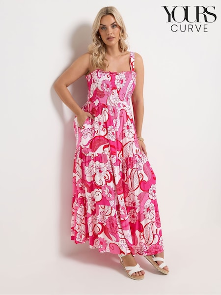 Yours Curve Brown London Floral Mesh Square Neck Dress
