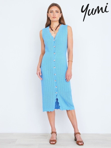 Yumi Blue Scallop Edge Crochet Knitted Midi Dress