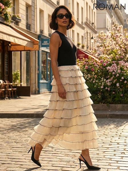 Roman Black Ruffle Knit Maxi Dress