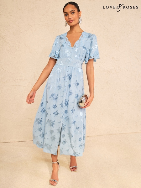 Love & Roses Pale Blue Petite Lace Midaxi Tea Dress