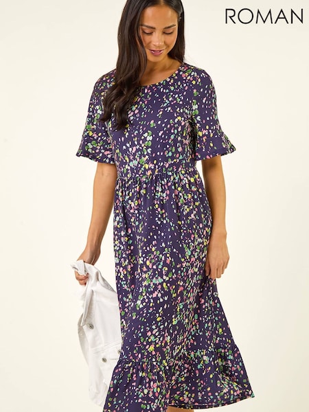 Roman Blue Petite Abstract Spot Dress