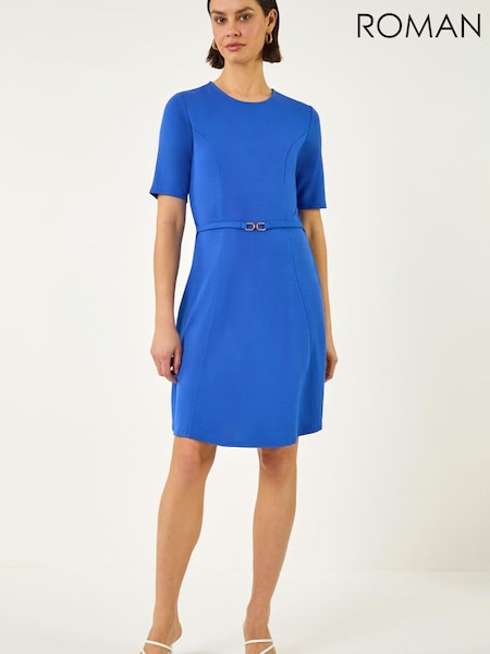 Roman Blue Belted Fit & Flare Dress