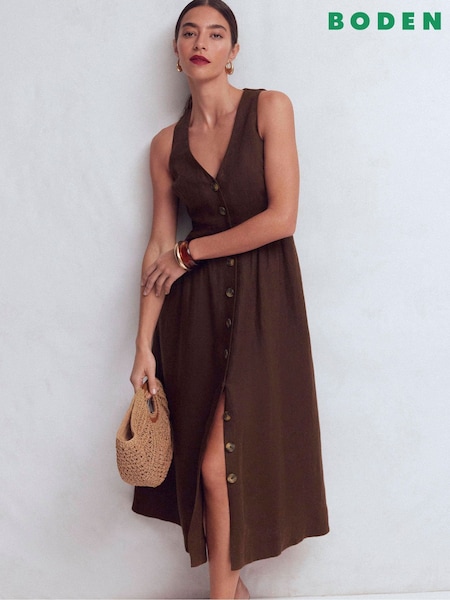 Boden Brown Catherine Button Linen Dress