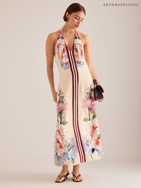Anthropologie Cream Mia Floral Halter Midi Dress