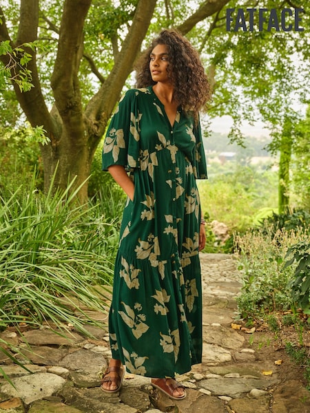 FatFace Paige Green Tonal Leaves Midi Dress