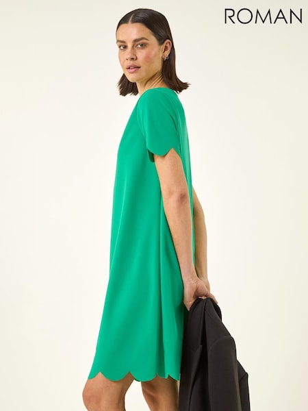 Roman Green Scallop T-Shirt Stretch Dress