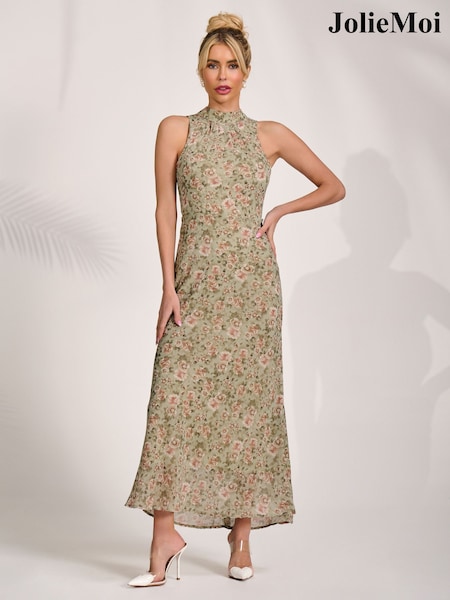 Jolie Moi Green Chiffon Halterneck Midaxi Dress