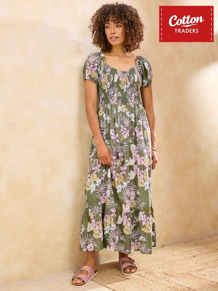 Cotton Traders Green Shirred Bodice Maxi Dress