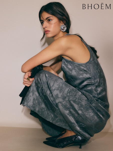 BHOEM Grey Floral Print High Neck Maxi Dress