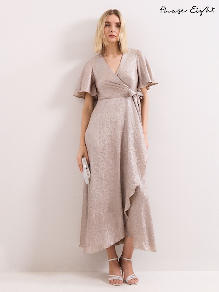 Love & Roses Green Bow Metallic Ruffle Sleeve Maxi Dress