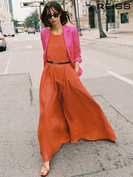 Reiss Orange Rowe Cotton Halterneck Belted Midi Dress