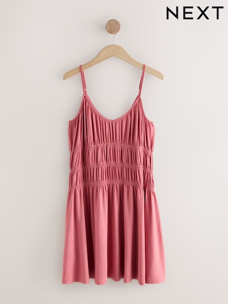 Rose Pink Jersey Mini Shirred Dress