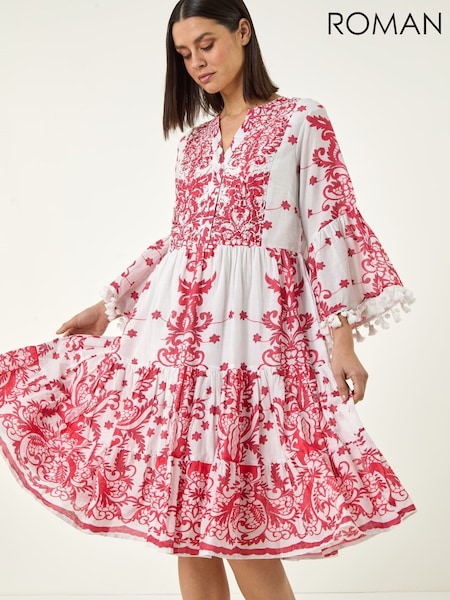 Apricot Pink Floral Print Blooms Ditsy Smock Dress