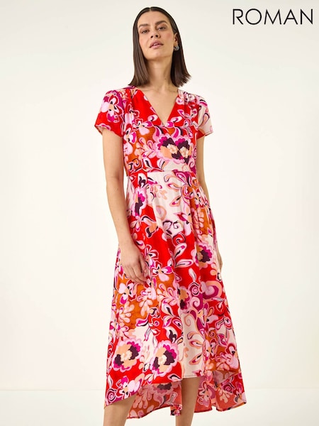 Roman Red Ditsy Wrap Stretch Dress
