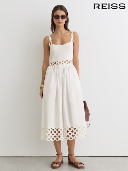 Reiss Ivory Phoenix Knit Woven Midi Dress