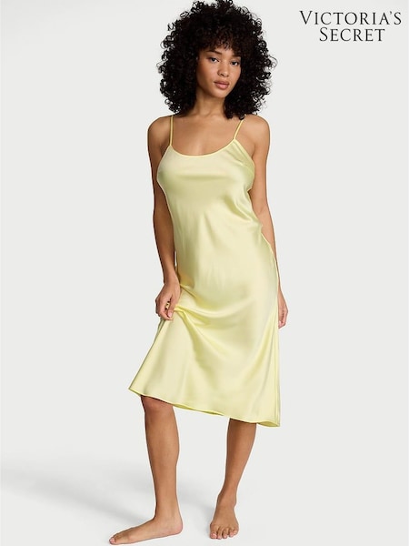 Victoria's Secret Lemonade Yellow Satin Midi Slip Dress