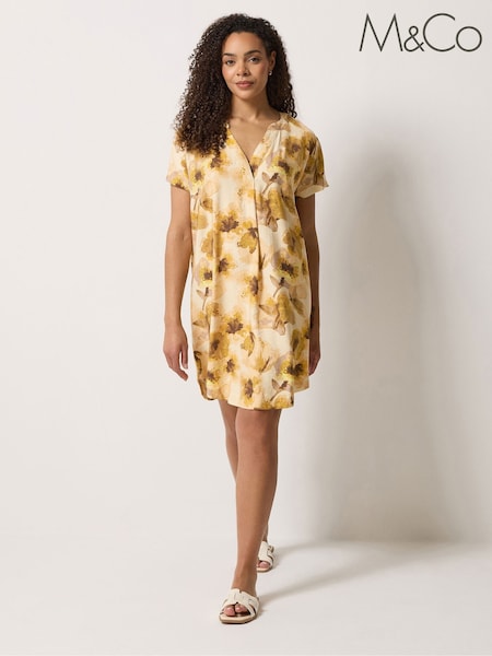 M&Co Yellow Notch Neck Mini Dress