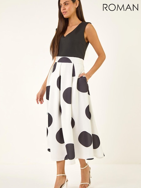 Roman White Spot Print Premium Stretch Dress