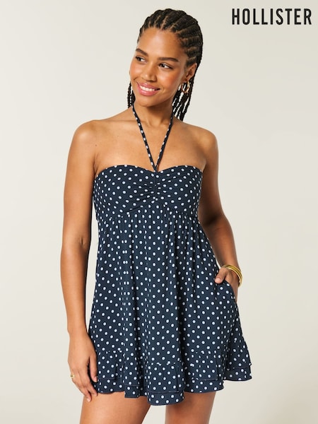 Hollister Blue Strapless Ruffle Babydoll Mini Dress
