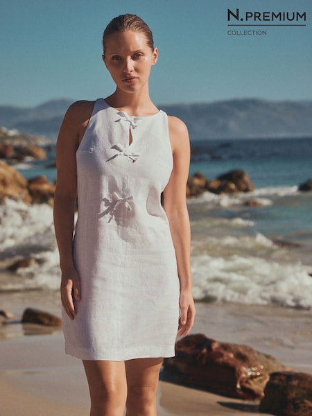 White N. Premium 100% Linen Mini Dress