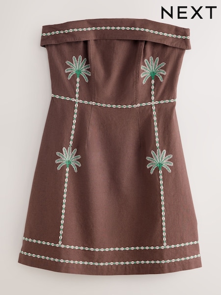 Chocolate Brown Palm Bandeau Mini Dress