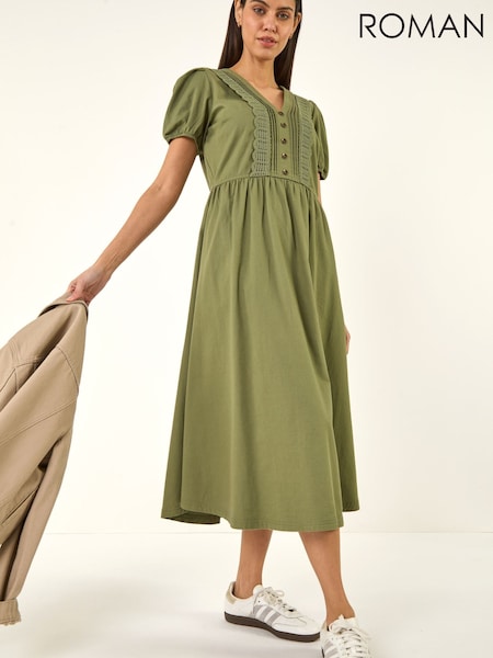Apricot Yellow Crochet Detail 100% Cotton Cami Dress