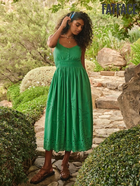 FatFace Teri Green Embroidered Midi Dress
