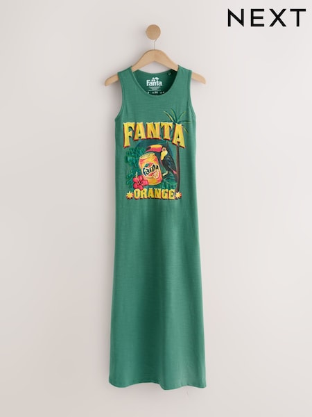 Green Fanta Graphic Sleeveless Jersey Midi Dress