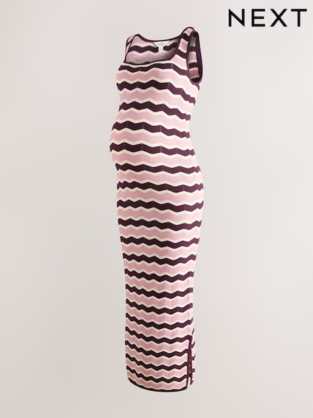 Pink Stripe Maternity Square Neck Knitted Dress