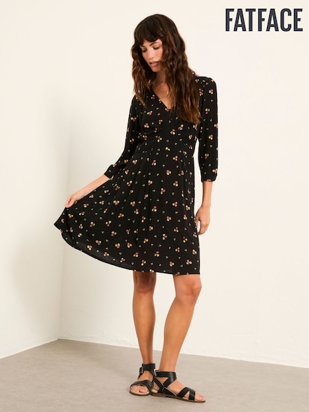 FatFace Anya Black Ditsy Pop Petite Dress