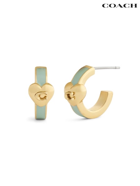COACH Gold Coach Signature C Heart Enamel Huggie Earrings