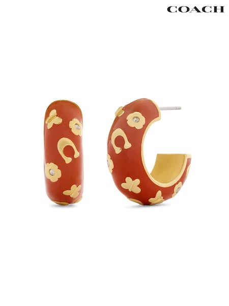 COACH Gold Tone Signature C Floral Chubby Hoop Earrings